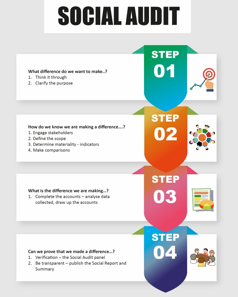Prove and improve the social performance using Social Accounting and Audit (SAA) methodology and Vision, Mission, Values, Objectives, and Activities (VMVOA) framework.